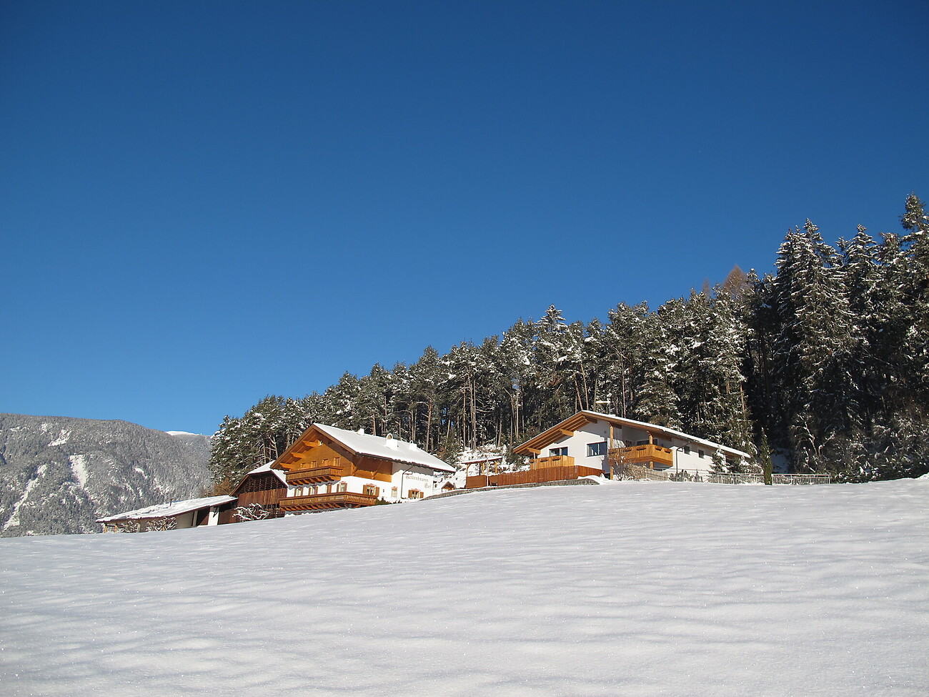 At the Farm Kaltenbrunnhof in Castelrotto, where stress and routine seem far away, you can experience many emotions. The cheeky goats jump on the roof of their small house inside their enclosure, or they munch without shyness the just watered flowers at the farm in Castelrotto. Next, in the large enclosure, lives the fallow deer. These animals are rather reserved, but you can see them as they arrive on time for dinner. The farmer looks after them and counts them; “…should be thirty…” mutters grandfather Toni. During the day, cats and other small domestic animals run free on the farm in Castelrotto. In order to take them and caress them you have to be very fast.