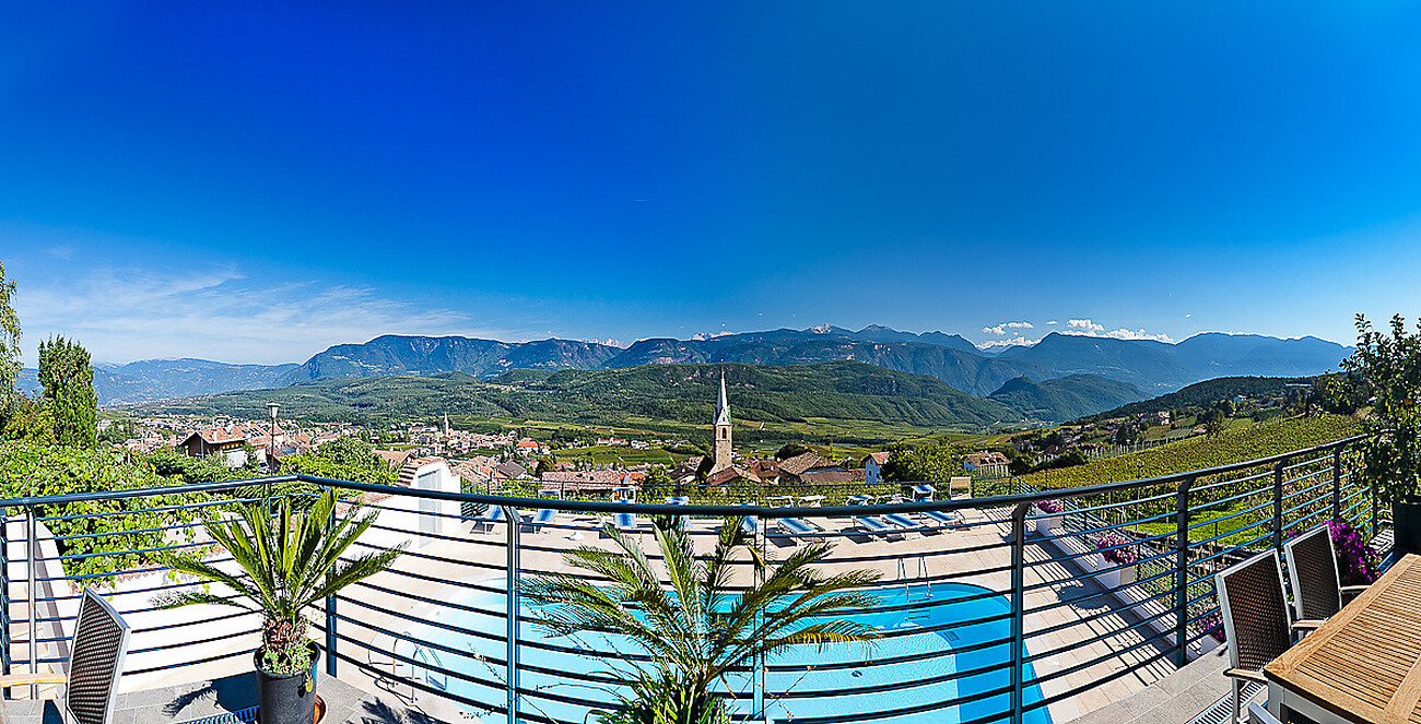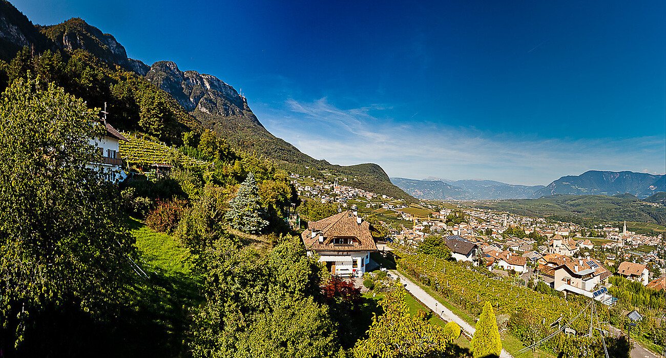 Our house lies in the upper part of Caldaro with an unforgettable view ranging from the Uberetscher vineyards and reaching the Dolomites.