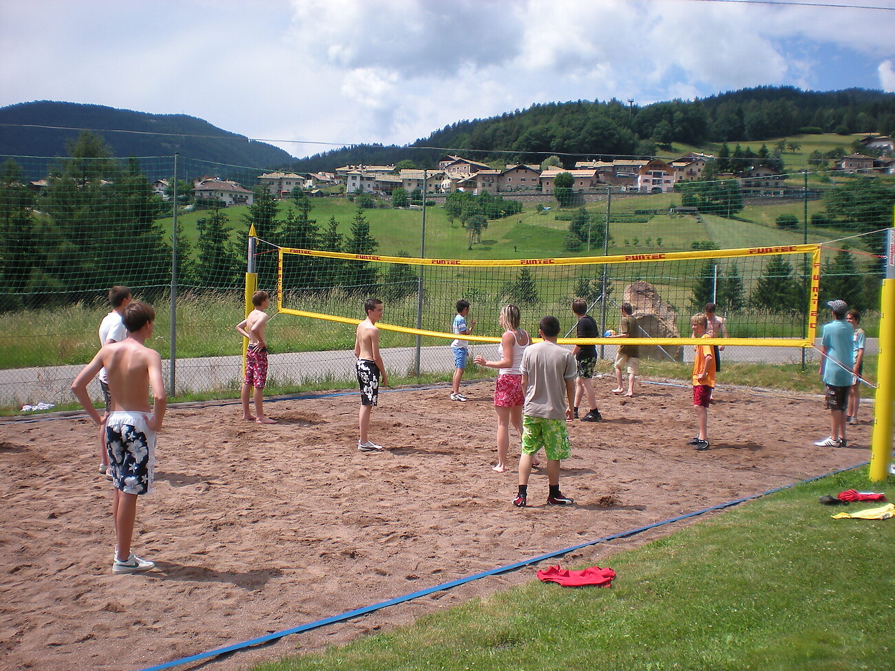 We have 16 shared rooms with level showers, a dining room with TV and video, a big common room in the cellar. In the yard you can play tabletop football, table tennis, basketball and moreover, we own a play area with an open air swimming pool.