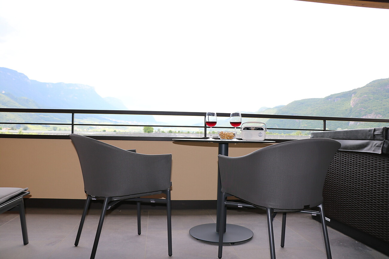 On our farm we have two comfortable suites, each with a 15 sqm covered panoramic balcony and whirlpool, from which you have a fantastic view of the wine village of Kaltern and the Überetscher Burgenwelt. Due to our proximity to Lake Kaltern and the cycle path, our farm is an ideal starting point for cycling tours.