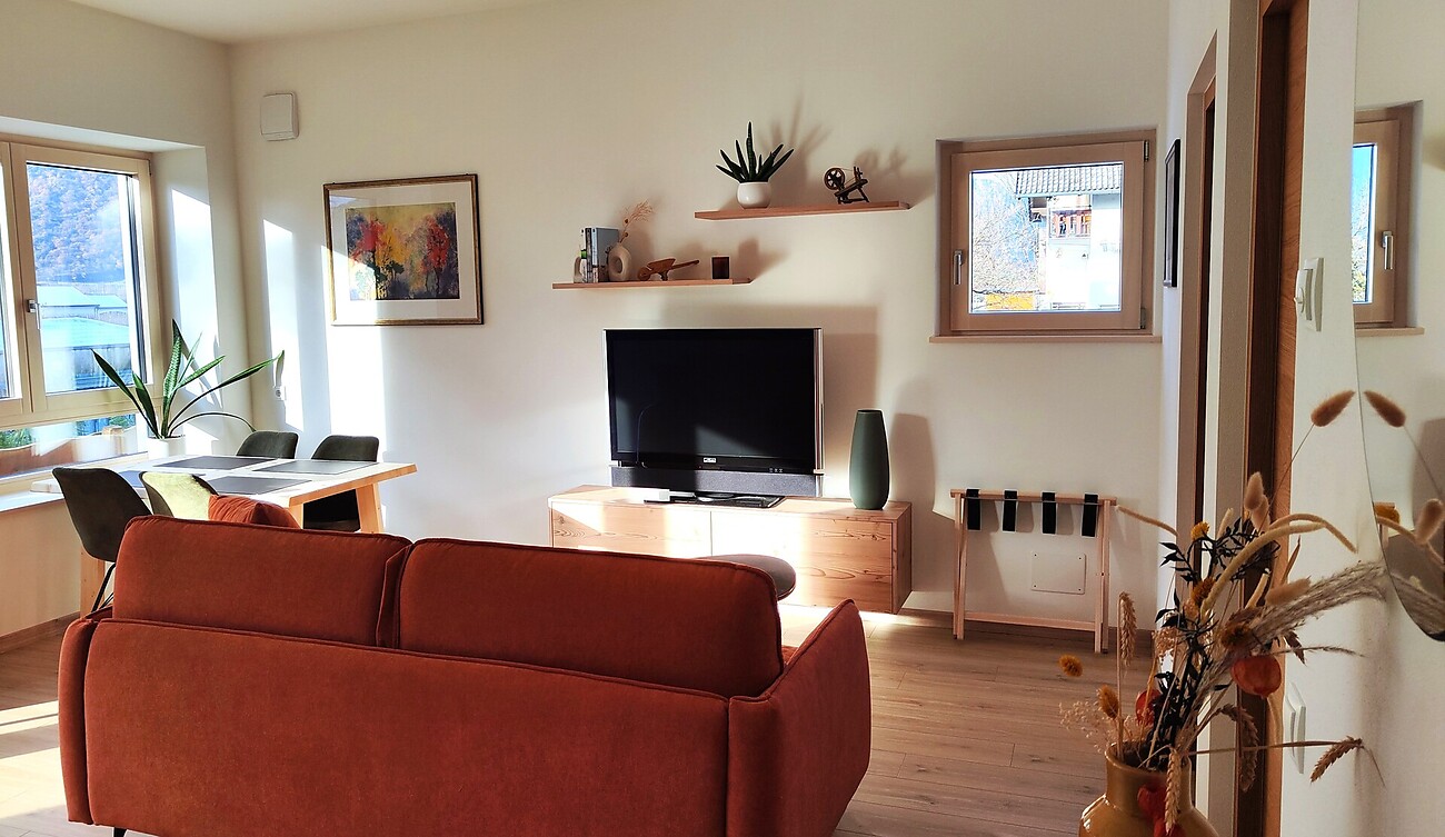 Welcome to our bright and sunny apartment with garden, fully renovated in 2025! Modern furnishings, a spacious living kitchen, barrier-free access, a comfortable sofa bed, and an e-bike charging station. Parking available on-site. Top location: Train station and village center are within walking distance, with a cycling path right outside the door. Lake Caldaro is just 5 minutes away, Bolzano about 20 minutes, and the Dolomites only 30 minutes. Perfect in every season: Spring: Apple blossom, mild climate, cycling, hiking, city markets. Summer: Lake Caldaro in 10 minutes by bike, cool mountain air on nearby peaks and alpine pastures, many local festivals. Autumn: Golden hiking season, clear air, mild climate, traditional "Törggelen". Winter: Dolomite ski areas from 30 minutes away, Christmas markets, winter hiking, ice rink in the village. Bolzano, Merano and Brixen are easily and freely accessible by public transport. Your base for nature, culture, relaxation & culinary experiences – all year round.