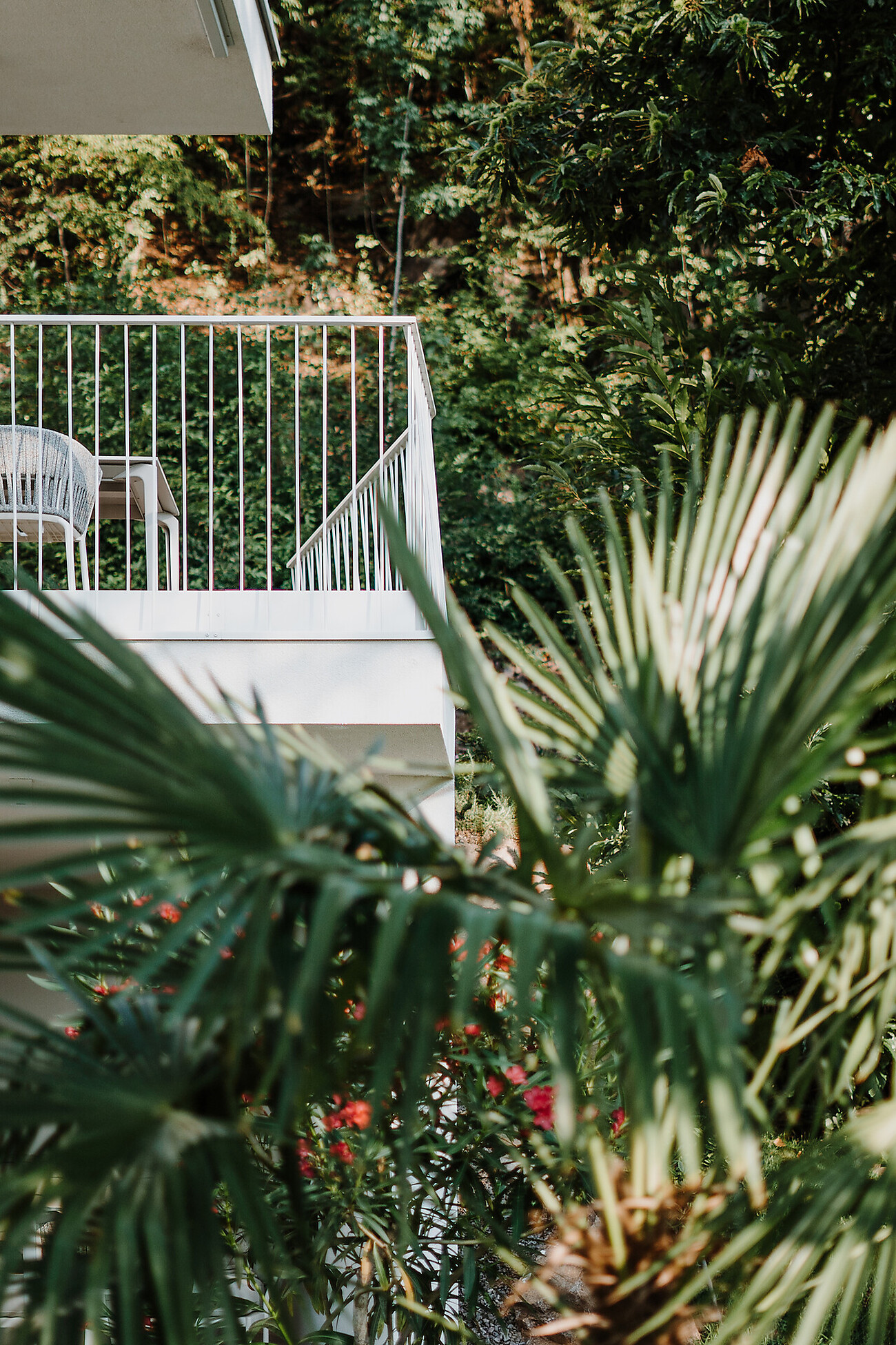 The Refugium Rochus in Caldaro, Pianizza di Sopra, is a holiday home for people looking to relax and connoisseurs. For people who are seeking something special. In a peaceful and sun-drenched location, not far from Lake Caldaro and Alto Adige's capital of Bolzano, five adults only studios and one suite meet the very highest standards of comfort, amenities and design. Natural materials such as wood, glass and concrete, stylistically confident architecture and the hosts’ love of detail harmoniously combine to create a feel-good atmosphere that offers space and peace but also every imaginable comfort. Like the Mediterranean garden in front of the building, the magnificent, uninterrupted view that takes in orchards and vineyards, the sauna or the delicious breakfasts that are served fresh every day in drawers.