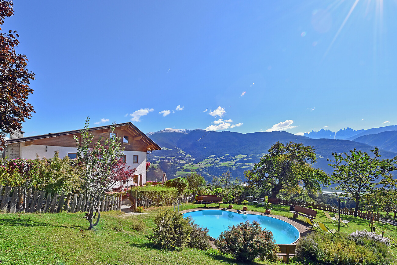 Our farm is situated in a quiet position with a marvellous sight to the Dolomites. Comfortable rooms, sunny terrace, lawn for sunbathing, ping-pong-table, barbecue, swimming-pool.