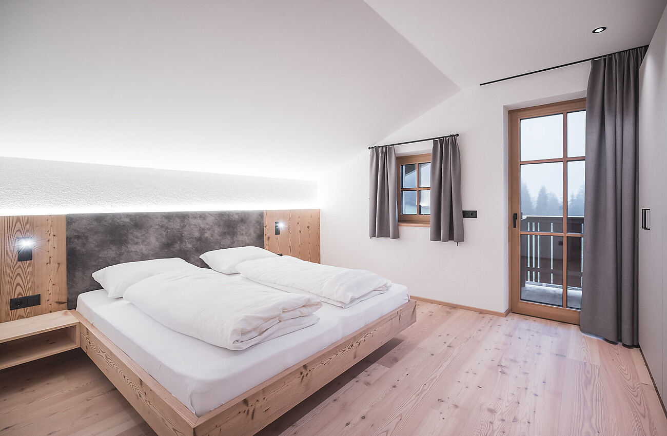 We offer 4 fully furnished apartments for 2-4 people, each with its own kitchen, bathroom, digital TV, balcony, and a wonderful view of the northern Dolomites or the mountain range of the valley. We also have a room with a bathroom and digital TV. Upon request, we are happy to serve a rich breakfast with our farm’s own products (milk, yogurt, eggs, jams), which you can enjoy in our traditional Tyrolean lounge with a wood stove.