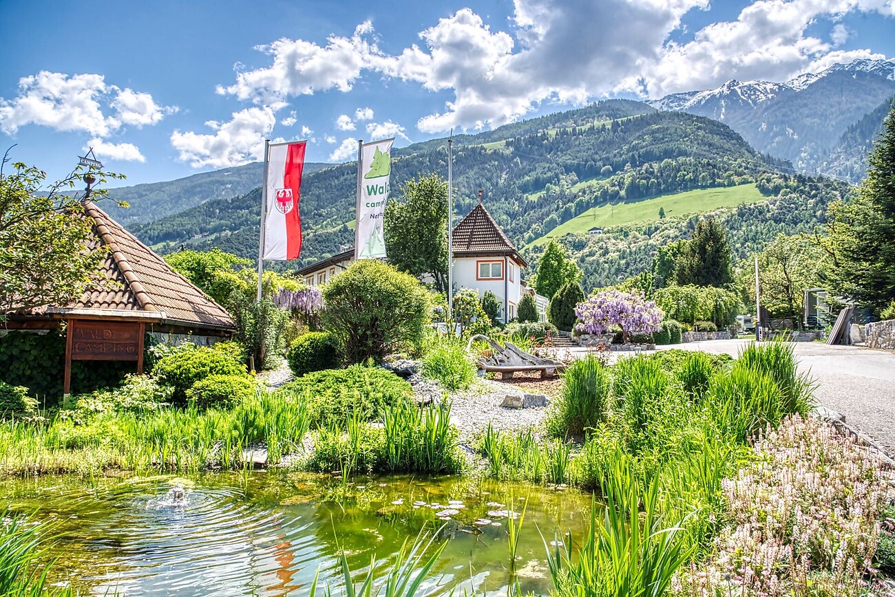 Our camping is in a very quiet position in the middle of forests and grassland. It's only five minutes walk from the village centre an 20 km above from Meran. It is a paradise for hikers. Lounge with TV, court, open air pool, mini-market.