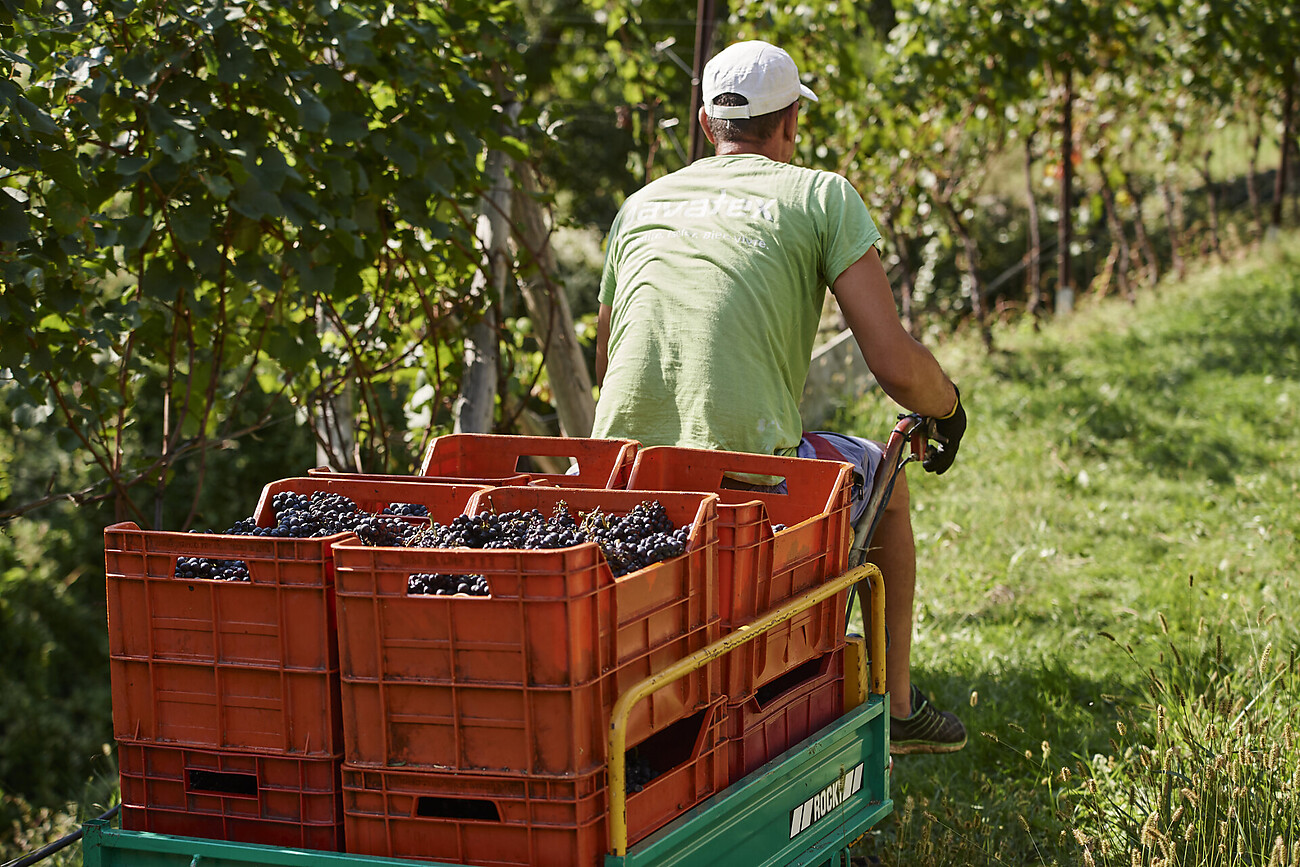 Thanks to the most modern cellar technology, the mechanical processing can be carried out as gently as possible. Gentle pressing of the grapes and the subsequent gentle fermentation process transform the grapes from must into young wine. With muse and above all time during the ripening in the cellar, the harmonious wines of Klaus Lentsch are created in inox and wooden barrels.