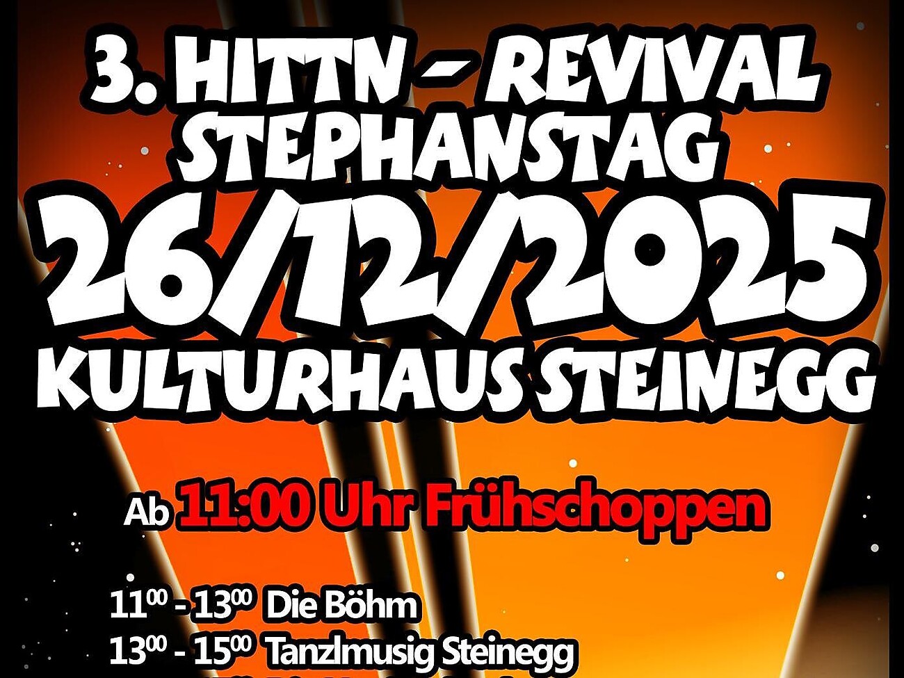On 26 December, Steinegg comes alive with music, good vibes and community spirit. At the 3rd Hittn Revival, you can look forward to a full day of live bands, local flavour and warm festive atmosphere – all for a good cause, as all proceeds will be donated to the St. Vincent Conference.