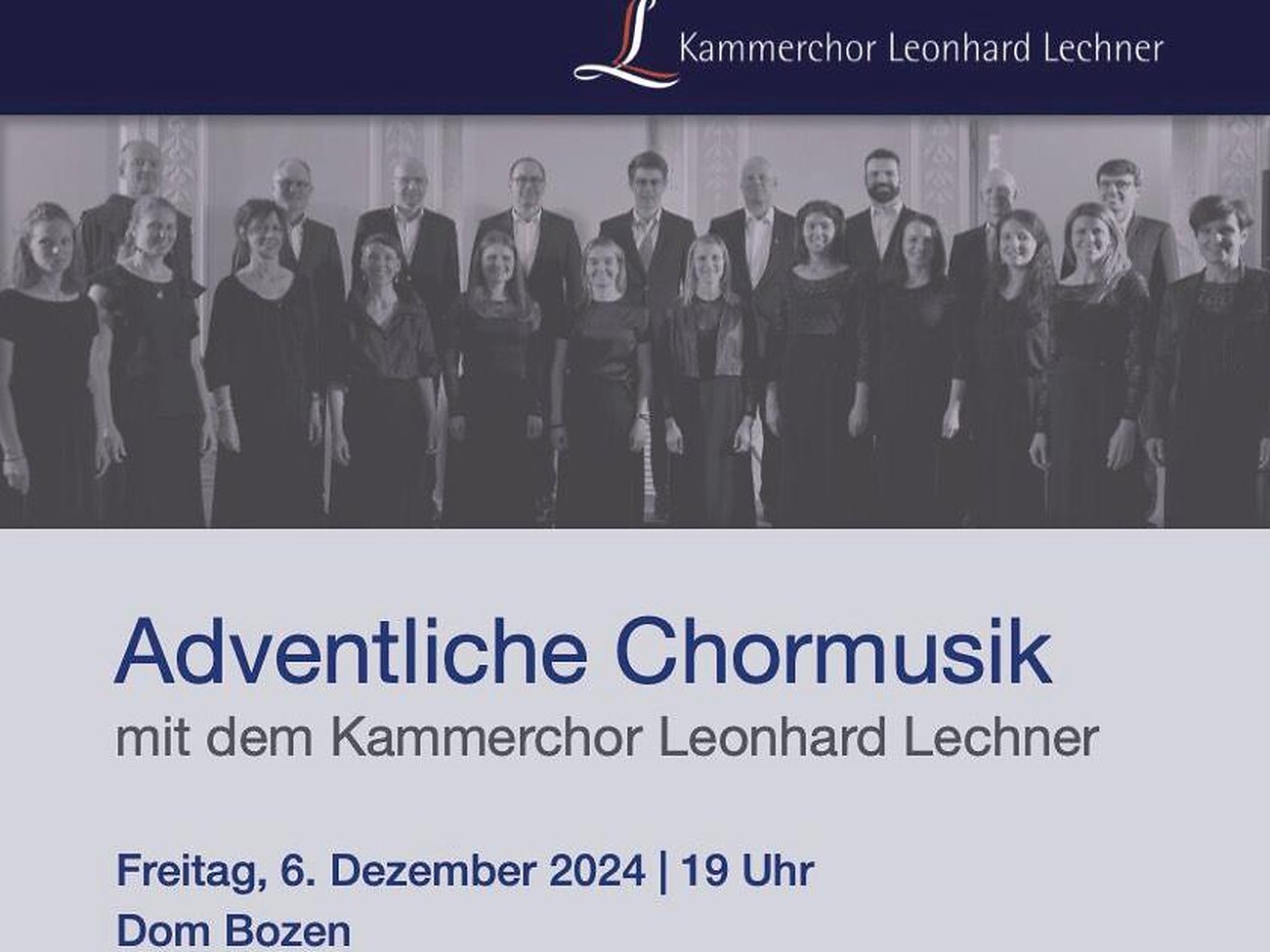 The Leonhard Lechner Chamber Choir with its director Tobias Chizzali presents ‘a cappella’ Advent choral music. The 20-strong vocal ensemble from Bolzano-Gries performs well-known Advent folk songs as well as vocal works by Leonhard Lechner, Oswald Jaeggi, Arvo Pärt and Anton Bruckner. Between the songs, Heike Tschenett will read contemplative texts that span the arc from the first to the fourth Sunday of Advent - from longing, peace and joy to all-encompassing love.