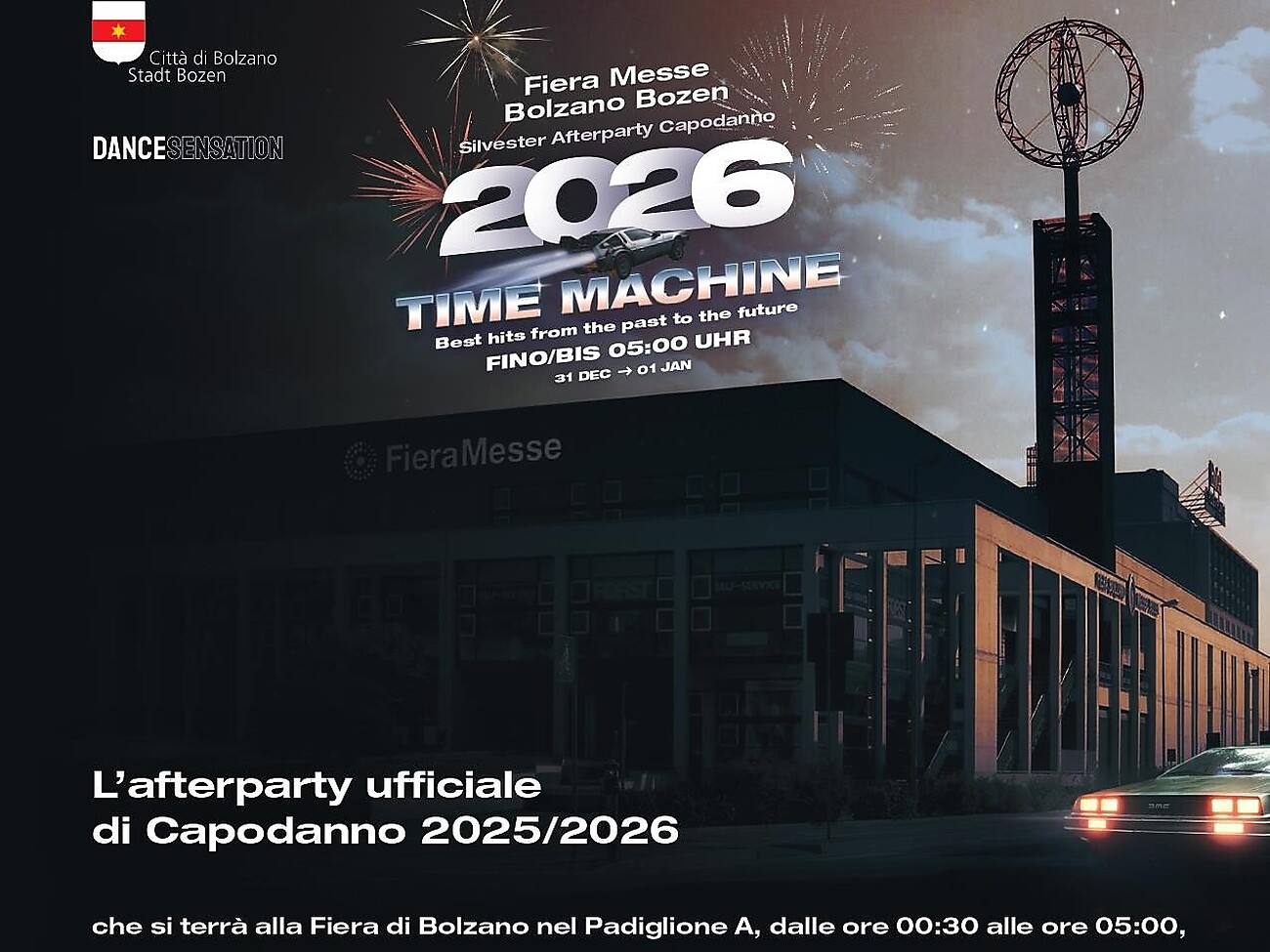 Die offizielle Afterparty zu Silvester 2025/2026 findet von 00:30 bis 05:00 Uhr in der Messe Bozen in Halle A statt und ist die Fortsetzung der Feierlichkeiten auf der Piazza della Vittoria. Die von der Stadt Bozen geförderte Initiative bietet einen sicheren und inklusiven Ort, an dem das neue Jahr mit Musik, Energie und Qualität gefeiert werden kann.
