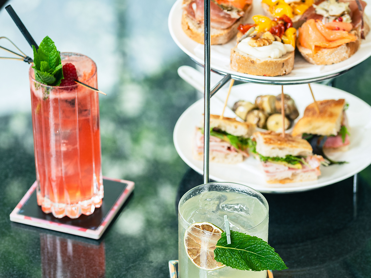 A variety of appetisers and two aperitifs of the day included for 25€.