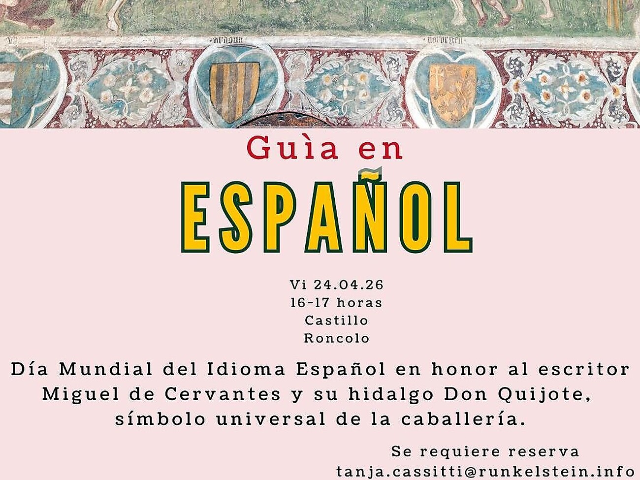 Con motivo del Día Internacional de la Lengua Española, que conmemora el aniversario de la muerte de Miguel de Cervantes, autor de Don Quijote, se organizará una visita guiada al Castillo Roncolo dedicada al tema de la caballería.