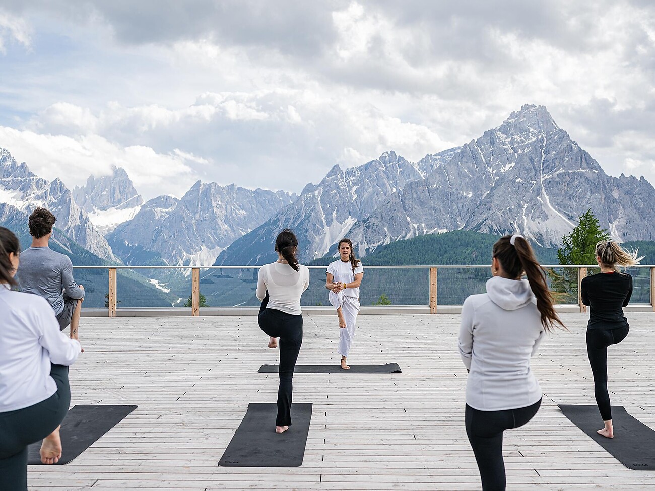 Mountain yoga on Monte Elmo at 2000 metres above sea level. A unique opportunity to relax in the midst of a breathtaking mountain panorama and end the day in the last hours of sunshine. Every level is welcome, whether beginner or advanced.