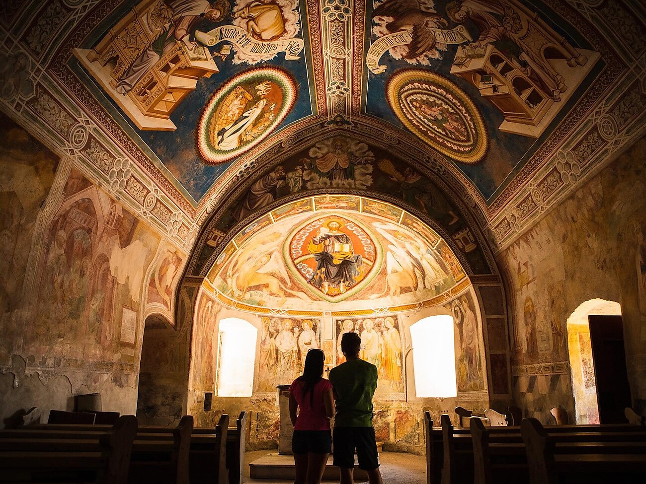 Evening hike to the St. Helena chapel with an art-historical guided tour. This charming little church features rich frescoes from around 1400, created by the Bolzano School of Painting. The style closely relates to frescoes in Terlan’s parish church and St. Catherine’s in Fiè. A highlight is the Niederthor family coat of arms on the triumphal arch, indicating their patronage. Hidden under layers of paint for years, the coat of arms was rediscovered in 1885 and restored in 1938. After the visit, we enjoy the scenic view before returning to the starting point. In german and italian language.