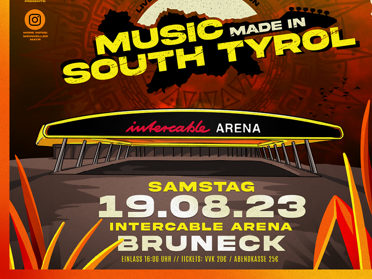 A special music event with the motto: "Live music is our passion". Normally, Tommy Schönegger lets the bands perform in his pub, Weinkeller Mayr. At first it was only an idea to make something bigger out of the passion, then it became a concrete plan: a night full of music from South Tyrol in the Intercable Arena!