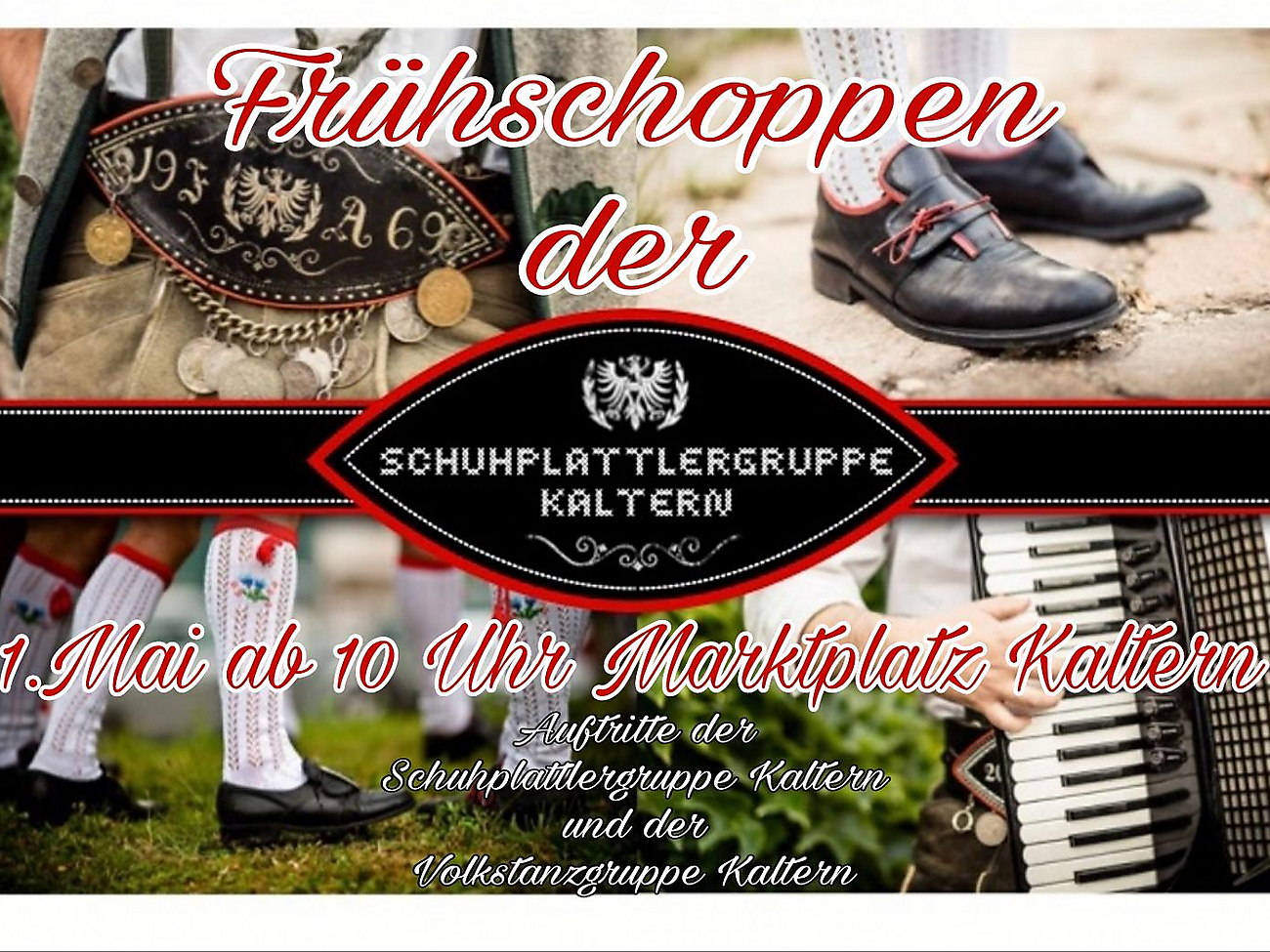 The Schuhplattlergruppe Kaltern invites you to the traditional morning pint on Thursday, 1 May. The event starts at 10 am. Music, food and drink will be provided. During the morning pint there will be performances by the Schuhplattlergruppe Kaltern and the Volkstanz Kaltern.