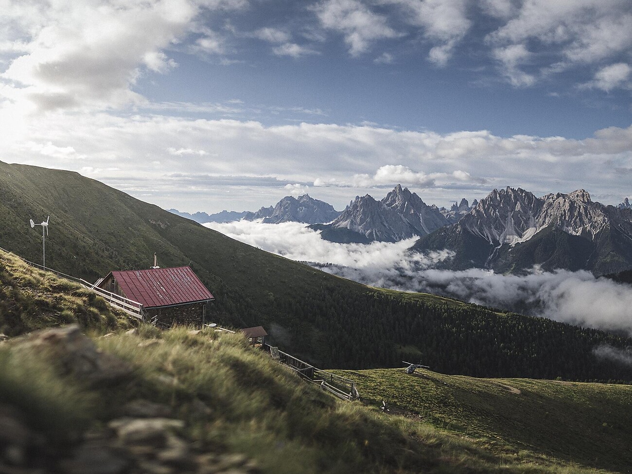 Walking the Alta Via of Dobbiaco is the best way to observe in their majestic complex the Dolomites, their striking shapes, the plays of colour and the shadows that the day and night light produces when it breaks on their white cliffs. In autumn this phenomenon becomes even more strong and involves the entire surrounding nature. Through this day and night-long experience everyone will be able to live this unique emotions, accompanied by our guide who will tell curiosities, anecdotes and stories about the Dolomites, its culture and people: We will climb up the valley to the Corno Fana to enjoy a spectacular fiery sunset, and after spending the night there at the Bonner hut, a real scenic stage on the Dolomites, we will admire the sunrise above the Three Peaks. After a rich and traditional alpine breakfast, we will cross the Alta Via of Dobbiaco to reach the new March hut hut where we will be served a tasty and typical meal surrounded by the Sundial of the Sesto Dolomites, the last stop before returning to the valley again...