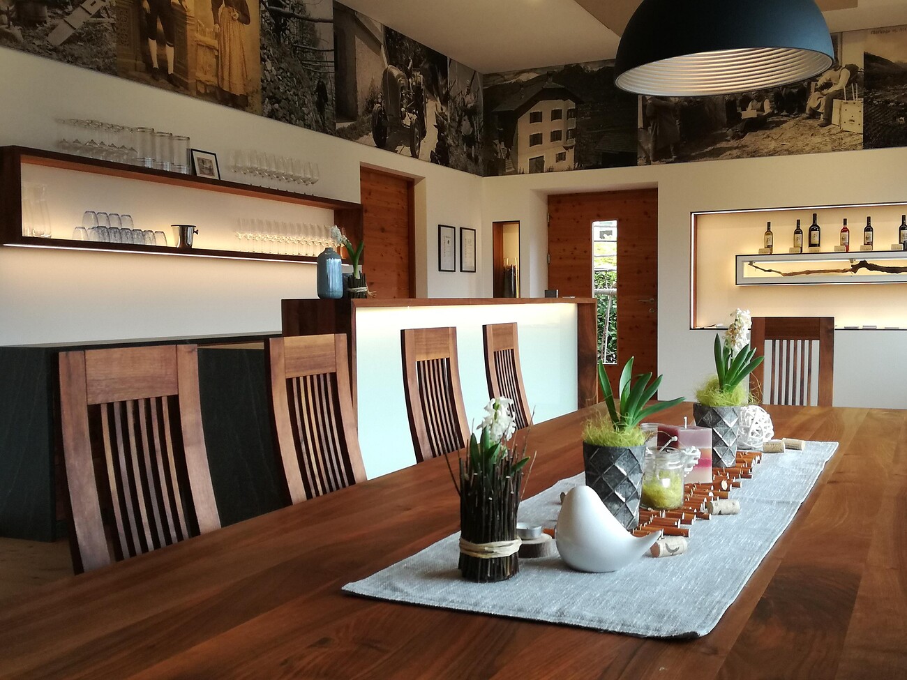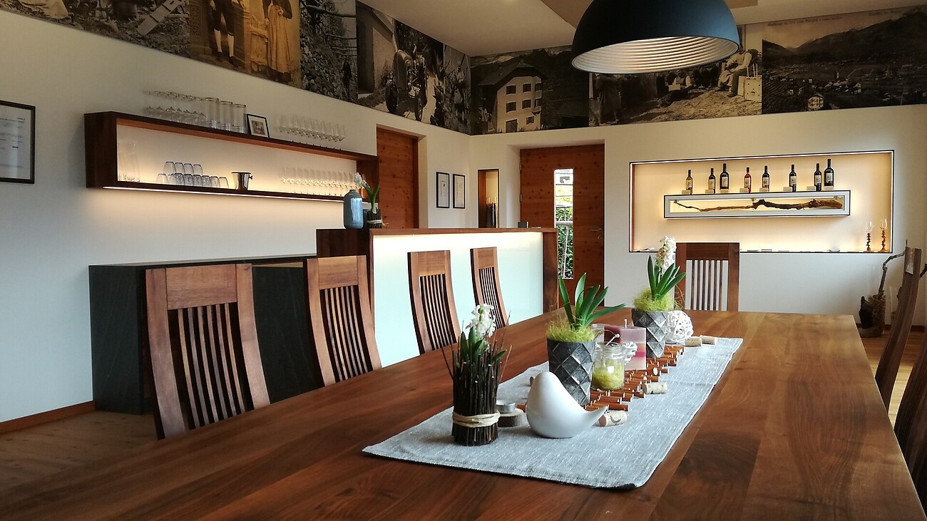 The wine selection includes native varieties such as Vernatsch and Lagrein, the fungus-resistant Bronner and Souvignier gris, as well as a powerful Merlot and Cabernet cuvée. These wines reflect the family's passion for nature-friendly and sustainable viticulture.
