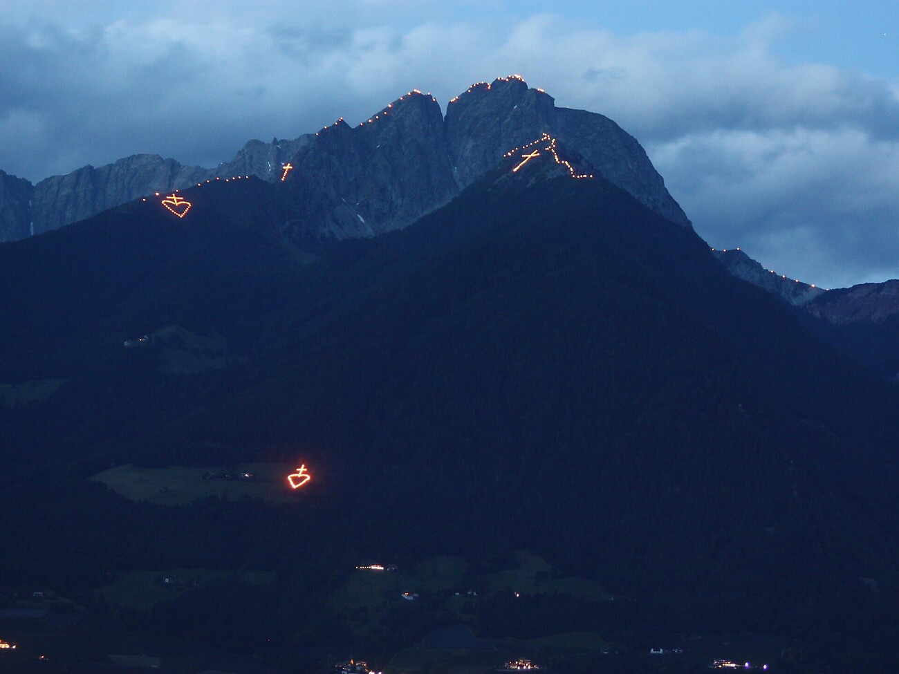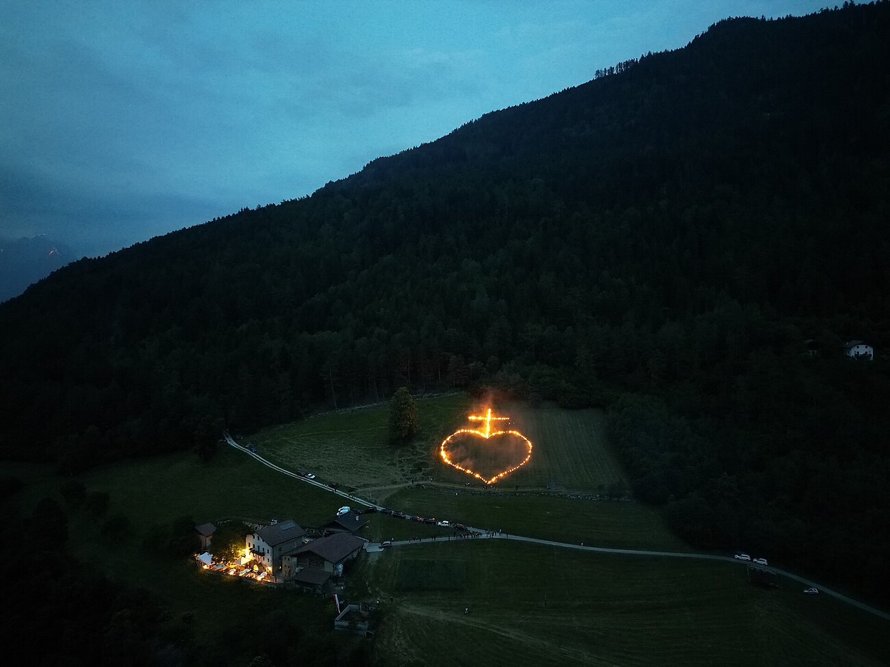 Am Sonntag zu Herz Jesu wird in der Wiese beim Oberbrunnhof wieder das traditionelles Herz-Jesu-Kreuz entzündet. Alle, die dabei sein möchten, sind willkommen – sei es zum Zuschauen beim Entzünden der Feuer oder um den Ausblick auf die brennenden Bergseiten zu genießen.
