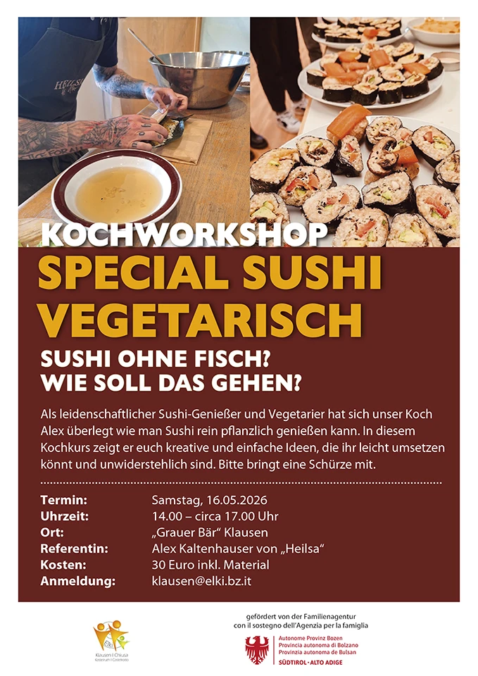 Als leidenschaftlicher Sushi-Genießer und Vegetarier hat sich unser Koch Alex überlegt wie man Sushi rein pflanzlich genießen kann. In diesem Kochkurs zeigt er euch kreative und einfache Ideen, die ihr leicht umsetzen könnt und unwiderstehlich sind.