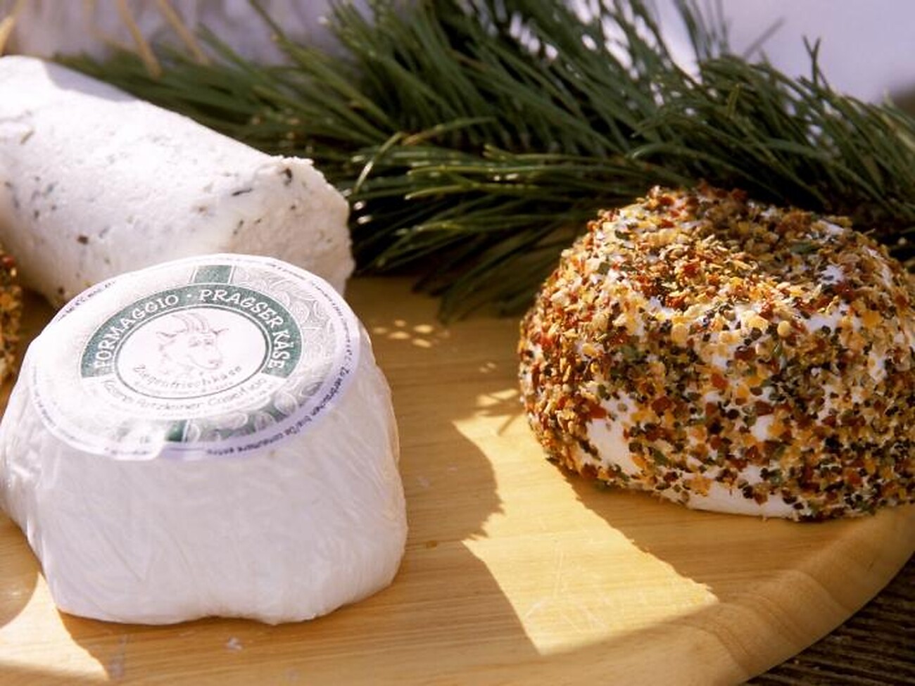 Festivity with music and milky treats in the center of Sexten in front of the cheese dairy and the Pizzeria Erich.