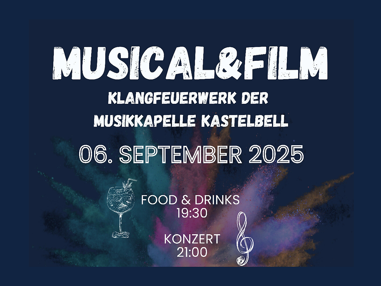 Mit dem Klangfeuerwerk präsentiert die Musikkapelle Kastelbell ein besonderes musikalisches Highlight, das Klangkraft, Emotion und Atmosphäre vereint. Das Programm reicht von eindrucksvollen Konzertstücken über moderne Arrangements bis hin zu beliebten Melodien aus Musical und Film. Für das leibliche Wohl ist ebenfalls bestens gesorgt: Es gibt Food und Drinks, die den Abend genussvoll abrunden.