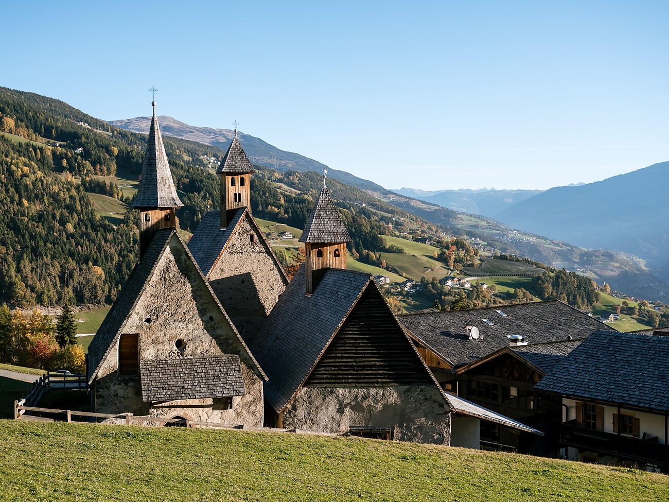 The cultural hike on the Barbian sunny slope leads past historical buildings to the three churches "Dreikirchen". Let the hiking guide tell you interesting things about the cultural treasures.