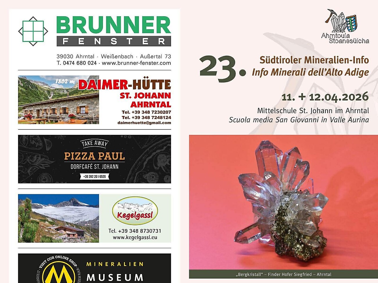 23rd South Tyrolean Mineral Information Event at the middle school in St. Johann – lectures, award ceremony and special exhibition