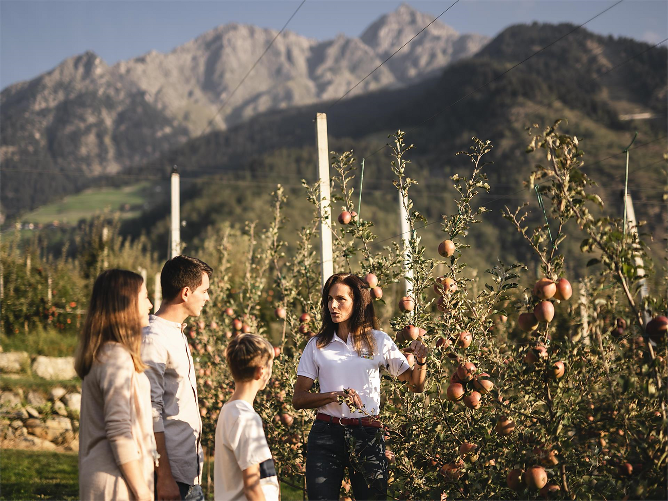 Together with apple grower Christine we set out on a journey of discovery through the local apple orchards. Our charming and knowledgeable guide shares plenty of interesting and curious facts about the apple growing industry in South Tyrol, about organic and integrated cultivation, the different varieties, the ingenious methods of naturally-derived plant protection and the protected designation of geographical origin.