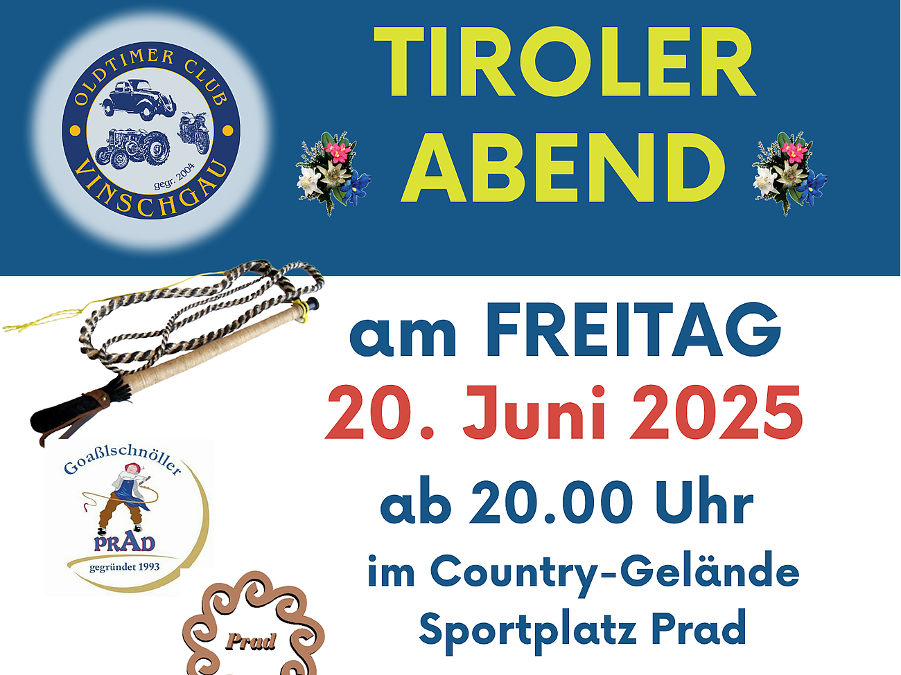 TIROLER ABEND im Countryfestgelände von Prad am Stilfserjoch mit der Begrüßung und Eröffnung der 7. Stilfserjoch Oldtimer Traktor Tour 2025