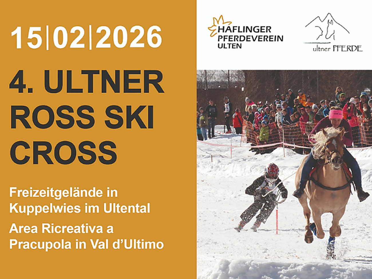 Starting at 10:00 a.m., at the Kuppelwies recreation area in Ultental, you can watch the spectacular challenges of teams composed of horses, riders and skiers, all in a convivial atmosphere accompanied by good drinks and excellent food.