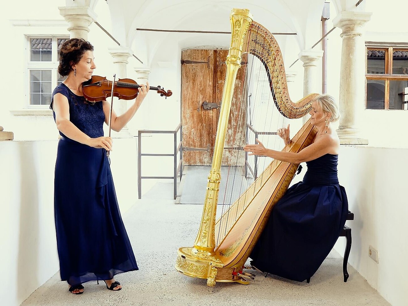 The Duo Aurora consists of two musicians who have been playing together for over 15 years: Christine Hübner on harp and Viktoria Gögele on violin. Thanks to the versatility of the harp and the elegance of the violin, they move with ease through classical and modern music, from J. S. Bach to film music.