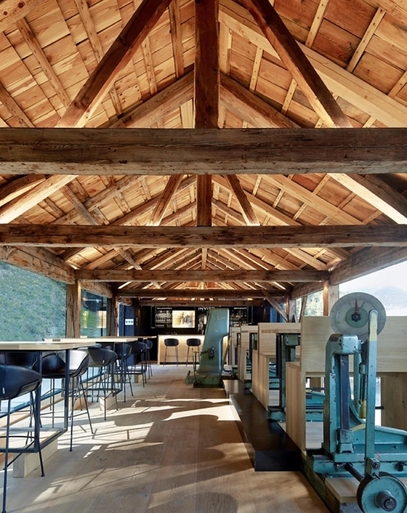 A modern, comfortably designed room awaits our visitors in the former monastery saw, which invites you to enjoy and linger. When the weather is nice, the outdoor terrace directly next to the larch forest, offers additional seating in a pleasant and quiet atmosphere.