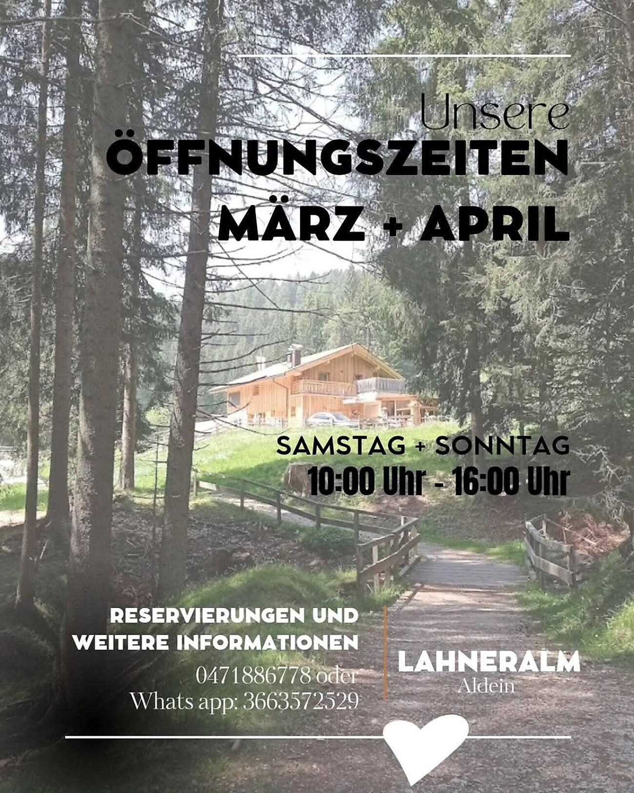 In Aldein, directly at the foot of the Weißhorn, in the middle of the UNESCO World Natural Heritage Site GEOPARC BLetterbach, lies the Lahneralm. The recently renovated feel-good alpine pasture is located at 1,583 metres above sea level and has been known as Aldein's "Schafalm" for more than 100 years.
