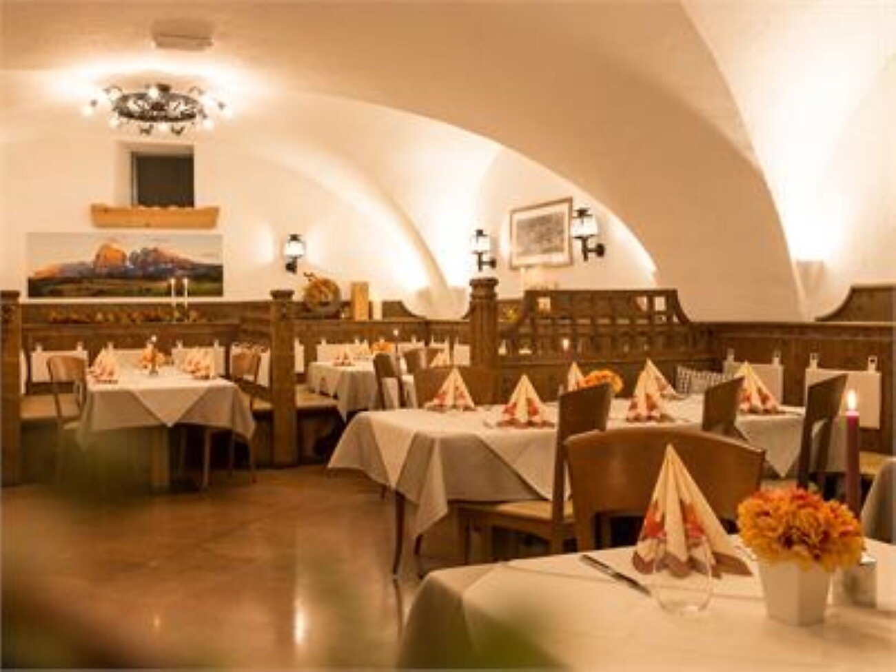 The name Mauriz was already mentioned in 1752 in a sales agreement. At that time, the Mauriz was used as a stable of the inn Morizen “Mauriz”, which belonged to the Sanoner family. Josef Anton Sanoner emigrated to France and came back only at the beginning of 1810. He bought the whole estate and called the inn “Adler”. In 1903 Johann Babtist Sanoner enlarged the inn and added walls to the wooden building. In the stable, which had beautiful cross vaults, there were many horses, which were used by the guests for riding tours and for coach tours. In 1985 a part of the wooden scaffolding of the interior construction and the old cross vaults, under which you are sitting now, were saved from demolition. The old wood was used for the interior decoration of the disco “Mauriz”. We have rented the building in 2003 and, with a lot of effort and particular attention to detail, have turned it into the restaurant and pizzeria Maurizkeller.
