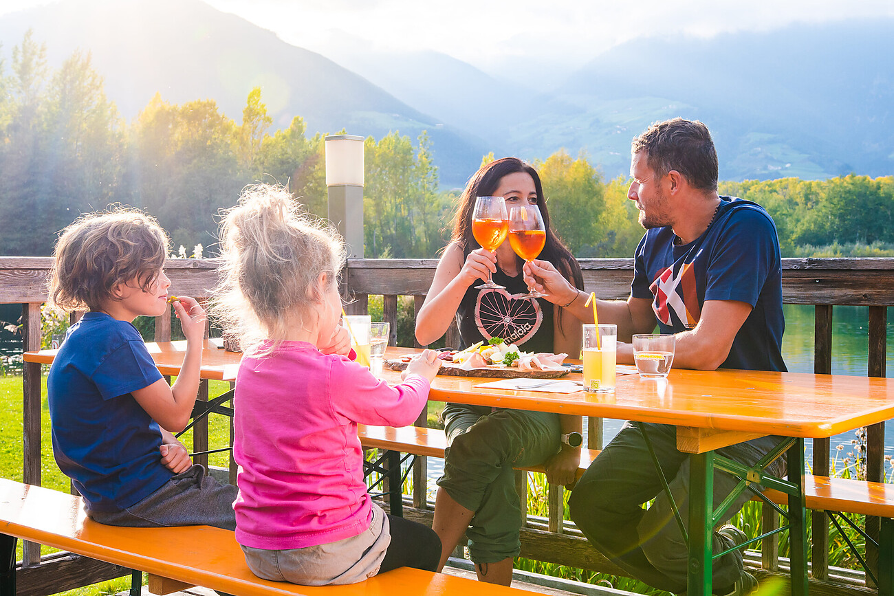 The restaurant can be reached by car, train, bike and on foot, as it is located right next to the Vinschger Cycle Path and the train station in Spondinig. At this idyllic location, a cordial service & culinary delights of a special kind await you.