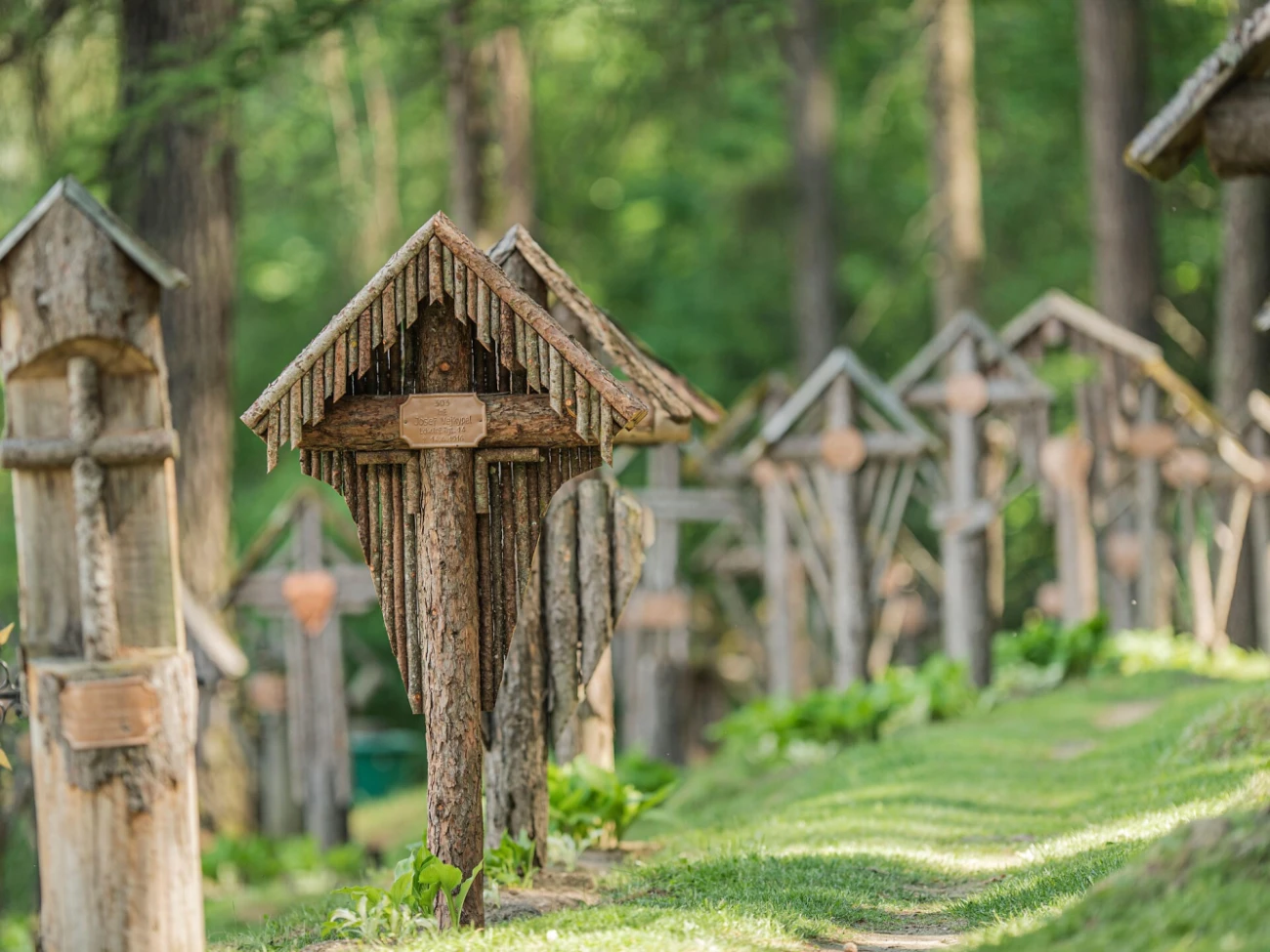 As it was not possible to bury them in the municipal cemetery, the city authorities allocated a large area on the Kühbergl—a wooded hill south of the town—to the military command for the establishment of a suitable resting place. A pioneer officer stationed in Bruneck, architect and engineer A. Bechtold from Bregenz, designed the cemetery in such a way that it blended harmoniously into the surrounding forest.