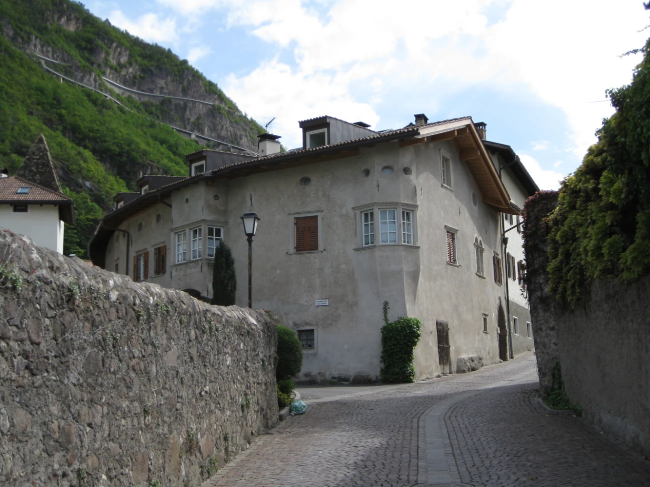 Complex of residential and farm buildings on the Wasserfallstrasse and the St. Kolumbangasse, arranged at an acute angle and grouped around a courtyard. Its core is located at the intersection of the two roads; it was expanded in the early 17th century, during the Renaissance, as indicated by the stone-framed courtyard gate with the monogram “Hans Pock” and the date 1626: the year 1620 could once be read on a double-arched window.