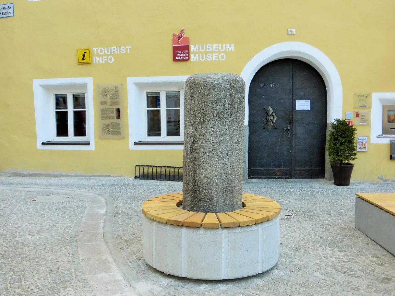 Roman Milestone of the Emperor M. Opellius Severus Macrinus and his son Diaduminanus (located on the main road, branching off towards Sonnenburg). The Roman milestone was found in Sonnenburg in 1857. Today the milestone is located at the entrance of the Museum Mansio Sebatum.