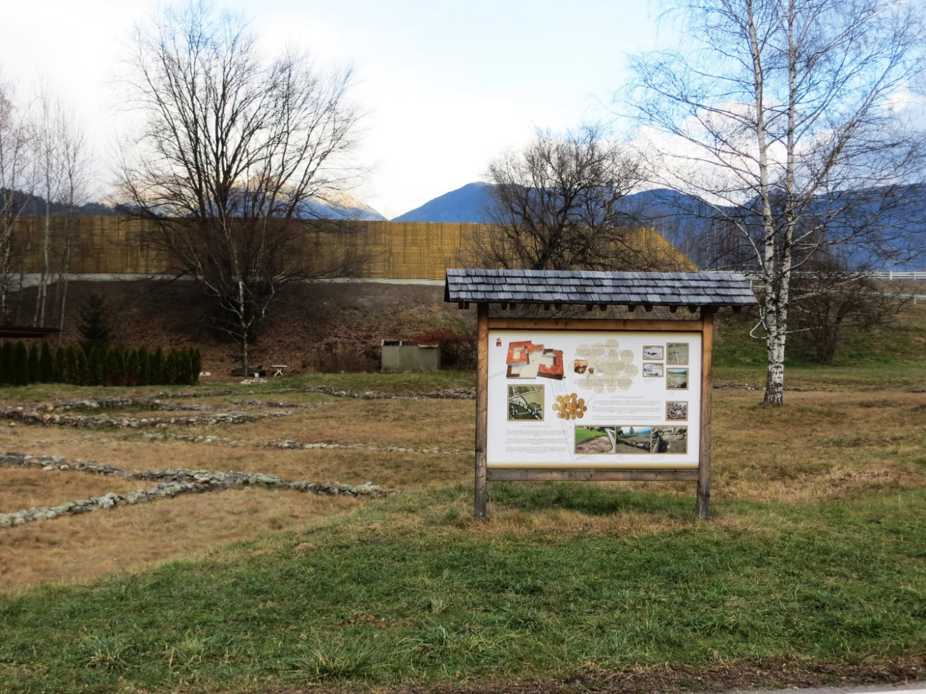 Site of the Roman settlement Sebatum, once spreading from the Schraffl-Bühel vis-à-vis the Heilig-Kreuz-Kirche guite far downstream the Rienz on both sides (new digs have been undertaken from time to time). There are remains of residential buildings, storehouses and troop quarters.