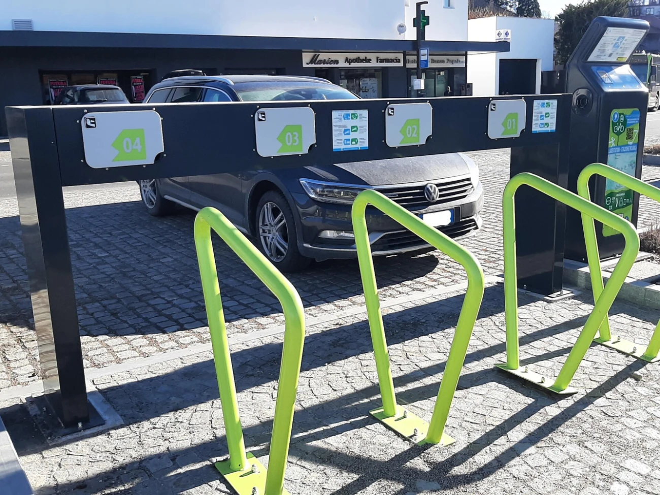 The e-bike charging station is located next to the tourist office of Fiè
