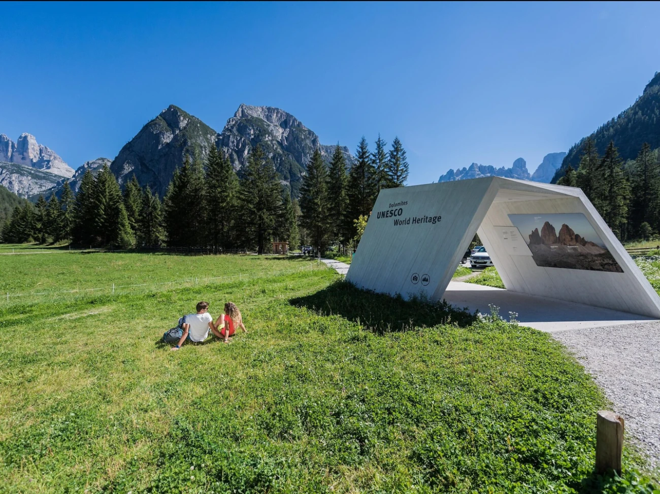 The E-Bike charging station is located in front of the Hotel Tre Cime/Drei Zinnen, at the View of the Three Peaks.