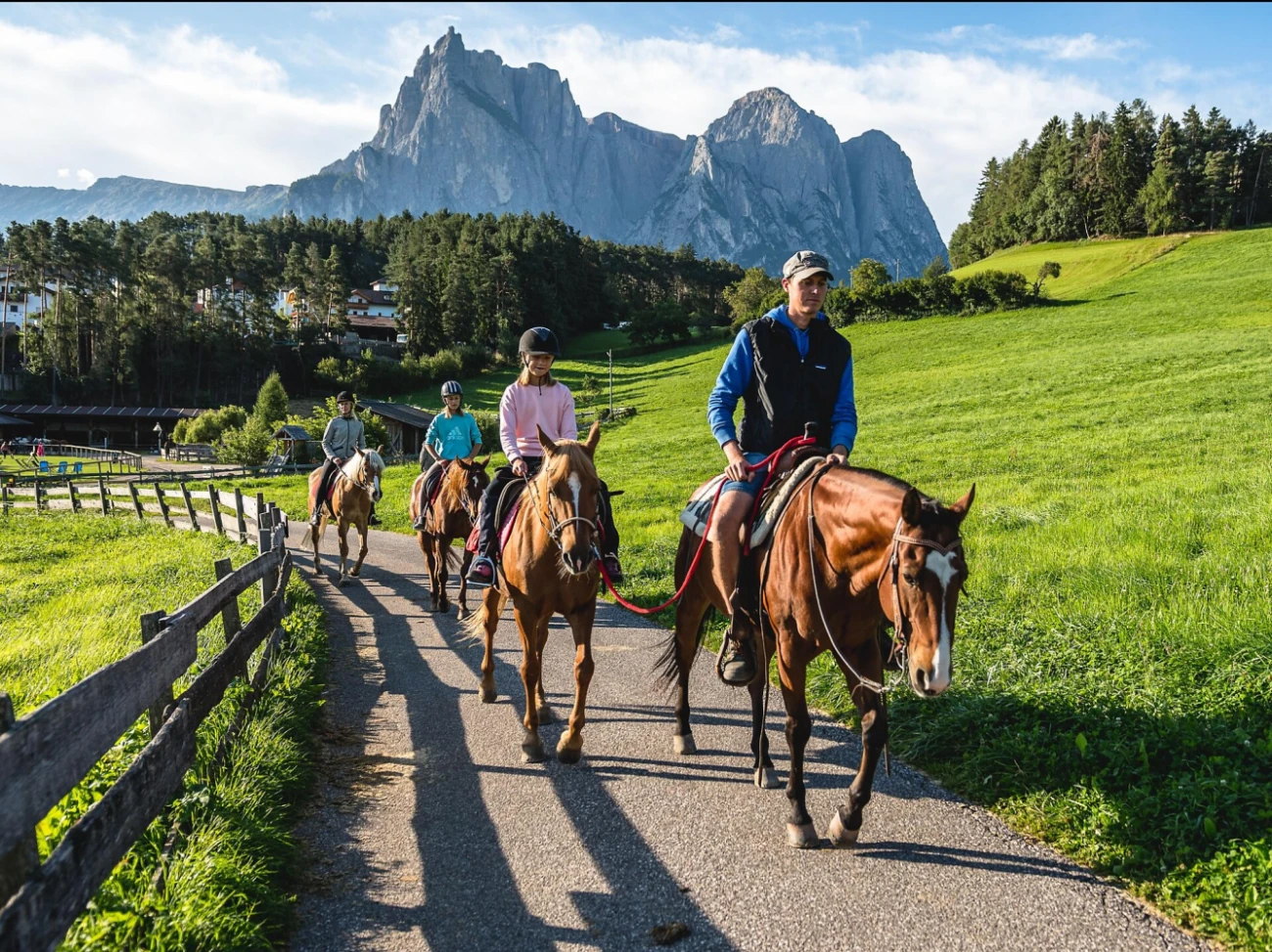 In the middle of the wonderful, natural landscape of the Schlern massif area are the Unterlanzin riding stables with stunning panoramic views of lush meadows, forests and the Schlern Mountain. Horse lovers from all over the world will especially enjoy the peace and quiet here, which suits our Haflinger and Quarter mix horses that radiate calmness. Here, everyone, whether old or young, can explore the wonderful mountain landscape of the Dolomites on horseback.