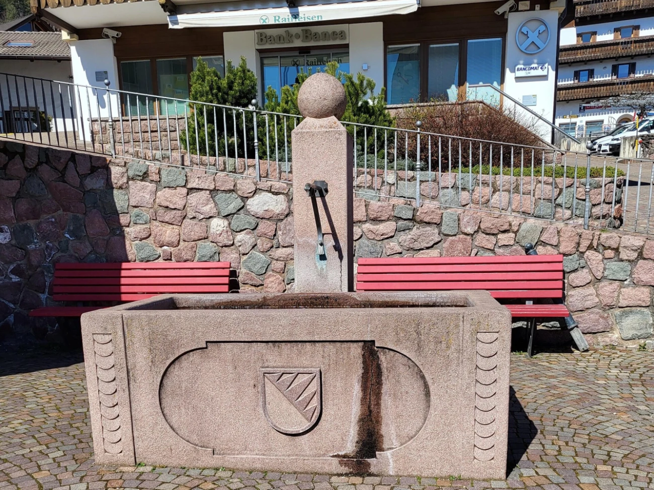 The fountain is located in the village centre of Jenesien in front of the ‘Zum Rössl’ restaurant.