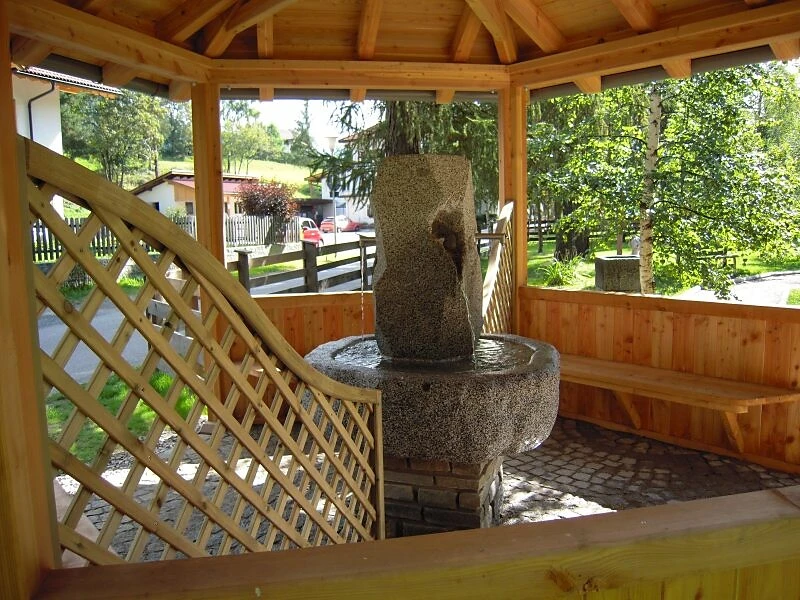 Water has been regarded as a heavenly blessing by all peoples, cultures, and religions. Since the fertile and destructive power of water originates at the source, people sought the power there to pray, ask for favors, or appease the gods. The newly built drinking pavilion in the Kneipp facility in the spa gardens, which is fed by the most famous healing spring in our community, the one in Bad Maistatt, could also become such a magnet. The water is oligomineral and is said to help with digestive disorders, metabolic disorders, respiratory problems, hysterical conditions, and abdominal complaints. According to the oldest medical treatise from 1675, the water is said to contain saltpetre, vitriol, and a “gold-coated” substance. The water contains only a very small amount of minerals. As the flow rate is very low, the fountain is also fed by springs that have been used in the facility for years. At one fountain outlet, the water flows over rock crystals from the Puster Valley, which significantly enhances the vitality of the water.