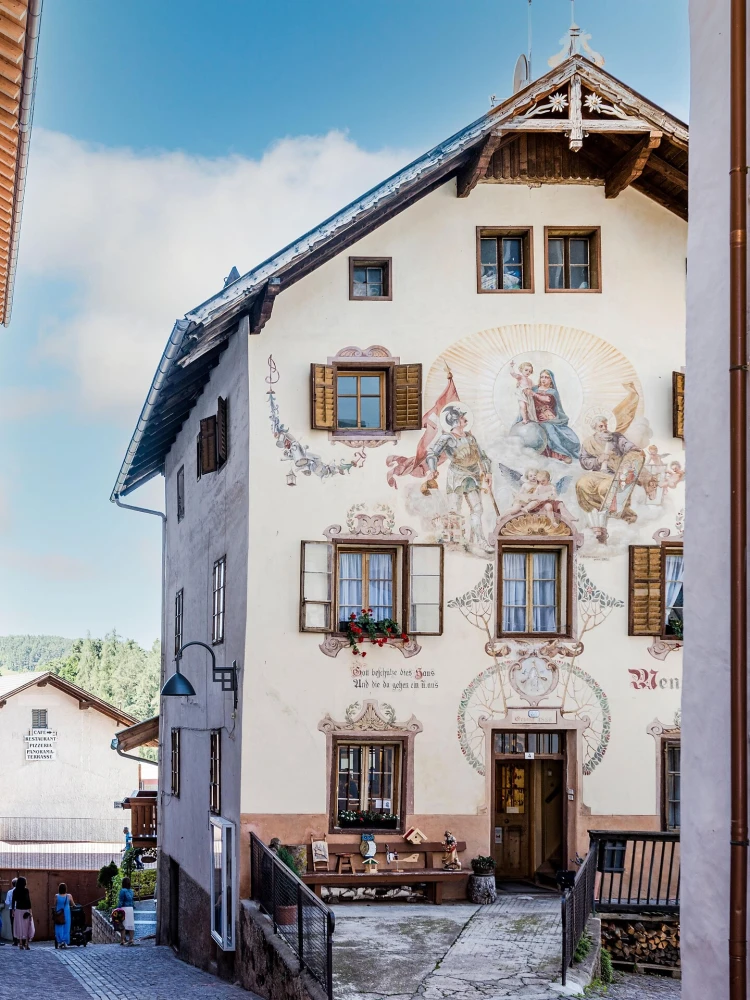 The woodcarving workshop is located directly in the historic center of Castelrotto, in the alley between Hotel Lamm and the Laechler House.