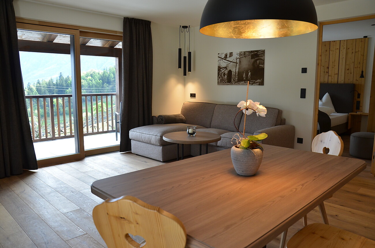 Il Mayerhof, a Caines, vicino Merano, convince con una riuscita combinazione tra elementi tradizionali e rustici e comfort moderno.