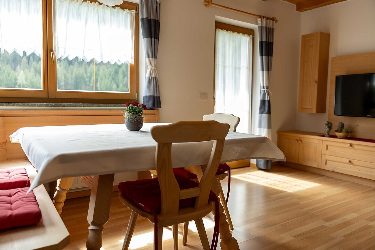 Il nostro appartamento, arredato con cura e con accesso senza gradini, è composto da 2 camere da letto con letto matrimoniale, un soggiorno, una cucina completamente attrezzata, 1 bagno e un WC per gli ospiti. Sul grande balcone si può godere della vista sulle montagne circostanti.