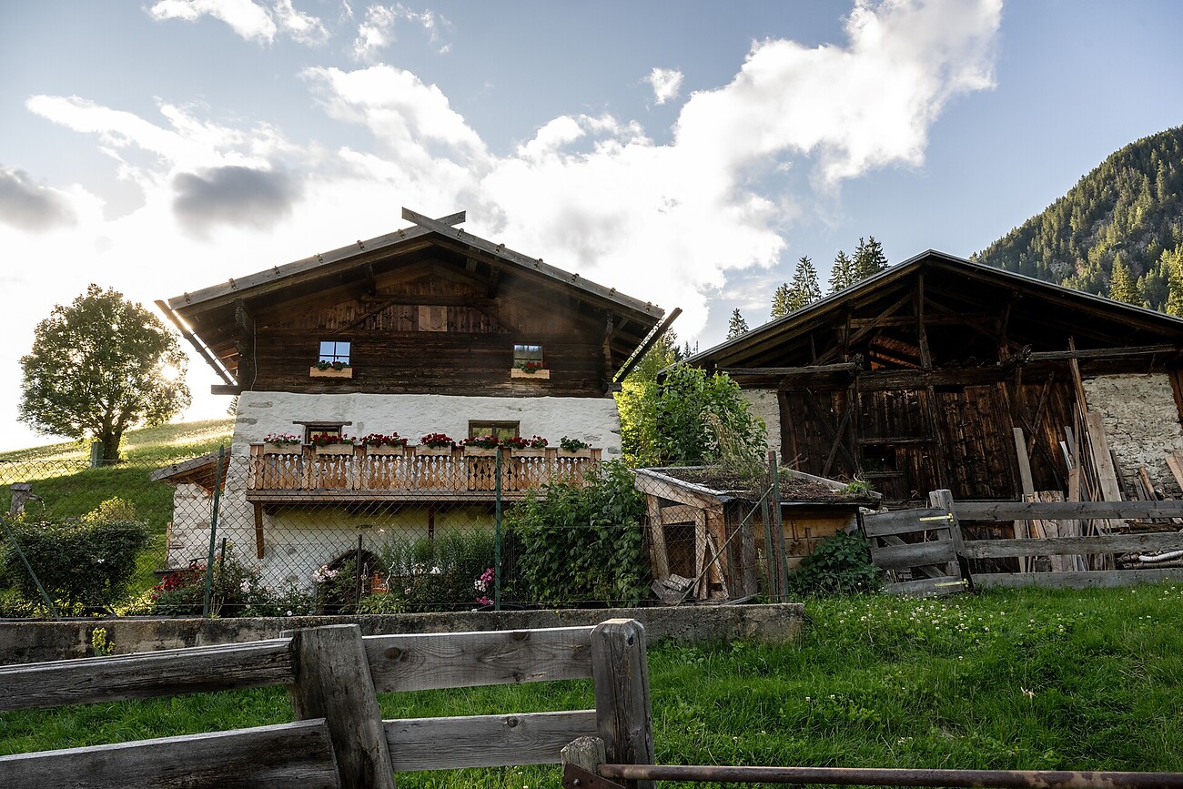 Pecore che pascolano sul prato, galline che razzolano nel cortile, la fontana gorgoglia, la ruota del mulino gira, l’orto è rigoglioso e generoso e il sole d’estate splende fino alle nove e mezza di sera nell’aria cristallina. Quello che arriva in tavola è di propria produzione: uova, pietanze d’agnello, Speck, insalate… Un posto magnifico per la colazione in montagna, per una merenda, un’allegra serata al rifugio. E un paradiso per i bambini!