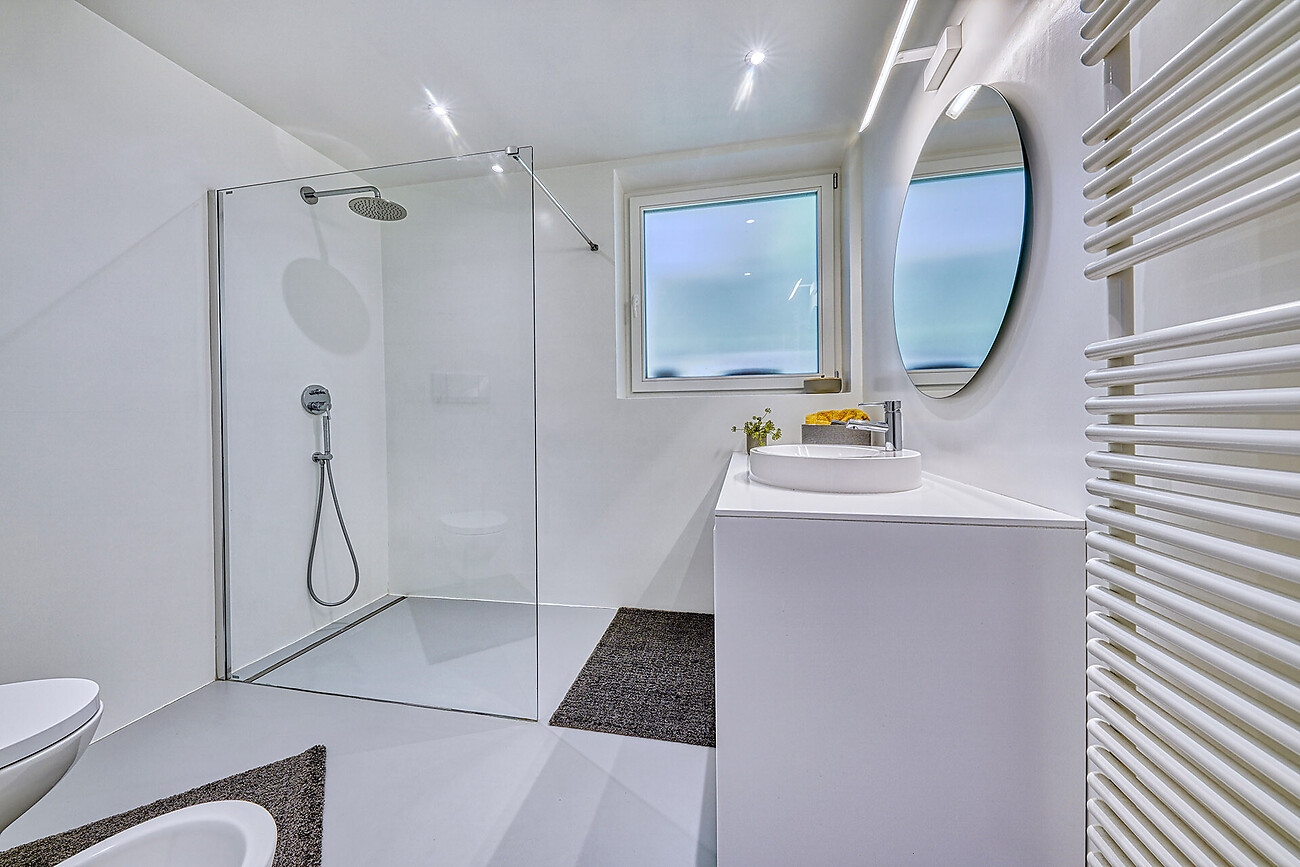 L'appartamento arredato con cura si trova al primo piano di una casa bifamiliare e si sviluppa su più livelli. Il piccolo balcone esposto a est con vista panoramica vi invita a gustare la colazione sotto il sole mattutino.