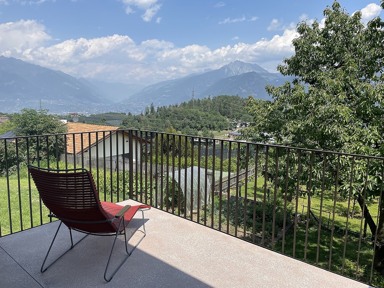 A Voiana, a 600 metri sul livello del mare sopra Lana, si trova il moderno Residence Plattwies, progettato dall'architetto, che ospita quattro appartamenti. L'appartamento al primo piano può essere affittato a breve termine o per un soggiorno di vacanza più lungo. La costruzione di alta qualità come casa clima è stata studiata nei minimi dettagli per massimizzare il comfort abitativo. Grande importanza è stata data all'uso di materiali da costruzione ecologici. L'esterno della casa è caratterizzato da colori caldi e rilassanti, di colore marrone, e si trova nel mezzo di un ambiente agricolo vicino al margine del bosco con un giardino, alberi da frutto e un piccolo orto.